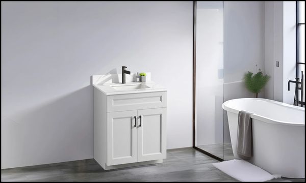 At VanityX, we offer four premium quartz options, carefully selected by our interior designers to suit any North American home. Our durable and elegant quartz countertops come with a standard ceramic sink, matching backsplash, and side splash for a complete and stylish bathroom look.
