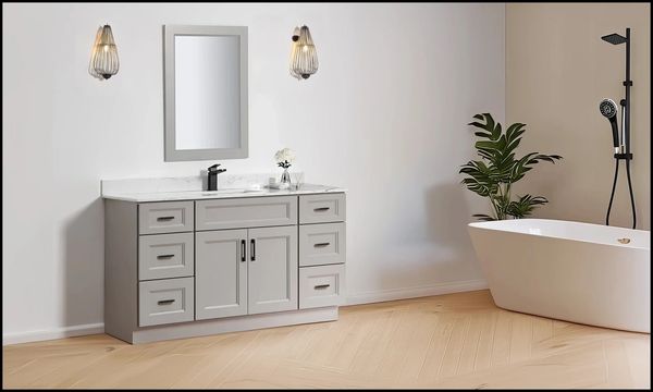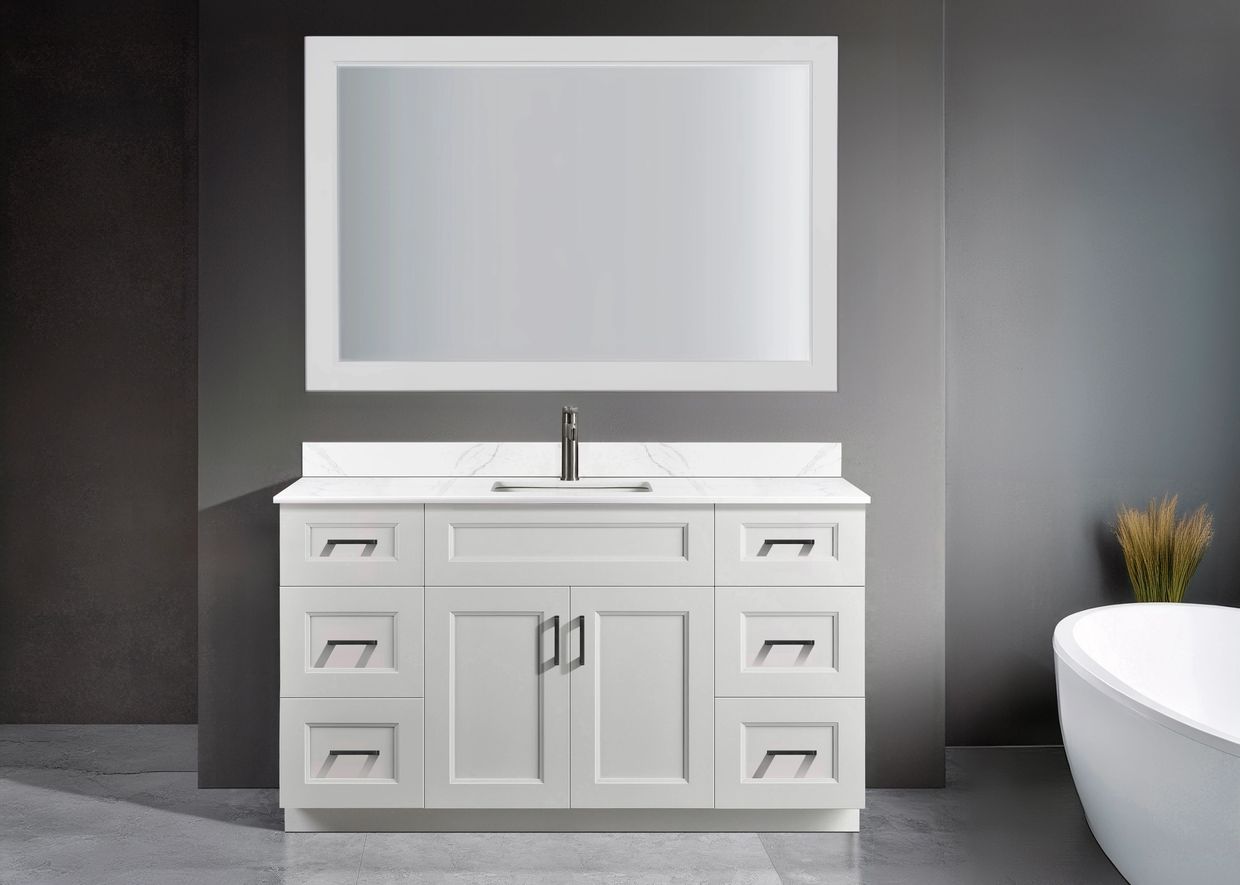 At VanityX, we offer four premium quartz options, carefully selected by our interior designers to suit any North American home. Our durable and elegant quartz countertops come with a standard ceramic sink, matching backsplash, and side splash for a complete and stylish bathroom look.